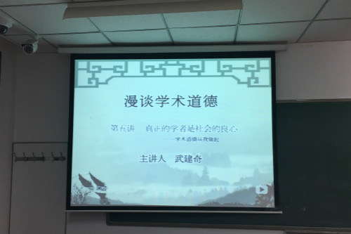 2018年11月28日晚20:00,公司2018级硕博新生顺利开展了第三期学教育特色活动,硕士班班长刘美杰同学、王子阳同学组织全体硕博新生共同观看了河北经贸大学武建奇教授主讲的《河北经贸大学公开课:漫谈学术道德》第五讲《真正的学者是社会的良心——学术道德从我做起》。