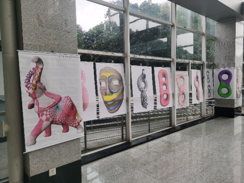 二、“当代几何拓扑”艺术流派。从 2023 年一月份开始,“可计算离散整体几何结构”实验室根据在图形学、应用微分几何拓扑、网格处理和生成等方面30年的教学、研究、工程工作,在国内首次提出通过各种艺术表现方法,例如图片、视频、雕塑、绘画等,以及用各种计算机图形学技术,例如虚拟现实、可视化等,来体现“当代微分几何拓扑”的数学理论和概念,尤其是“整体几何结构”的理论和概念。为了方便交流,这种艺术被称之为“当代几何拓扑”艺术流派。美国在上个世纪就有一些的体现几何拓扑理论的计算机动画艺术,如Outside in, Not knot等,以及一些艺术雕塑。