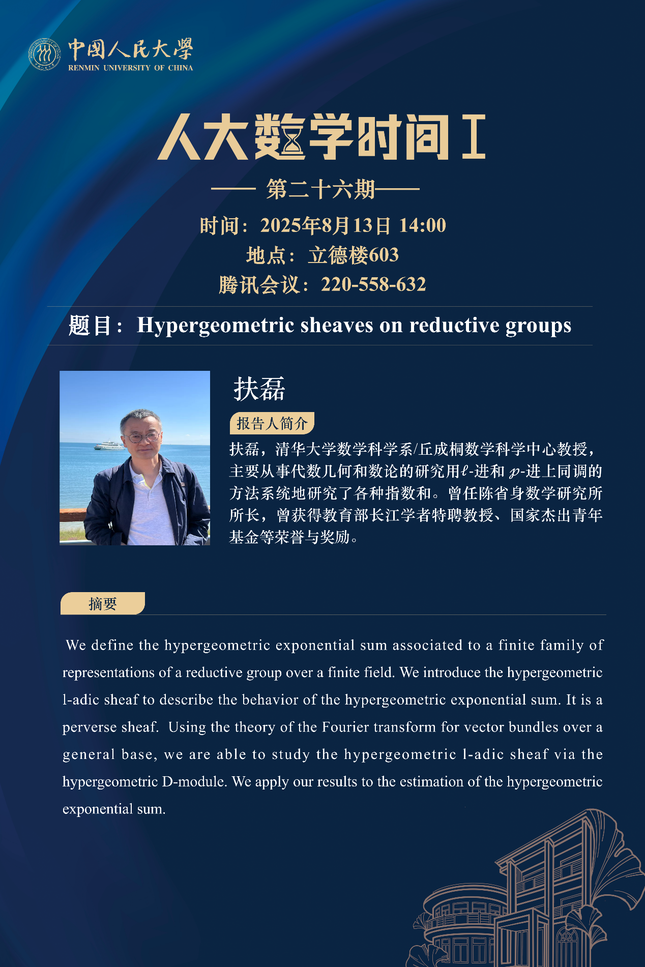 为促进学科交流融合、拓宽师生学术视野、释放科研创新活力,助力人大数学学科走向一流,伟德国际1946亚洲版设立“人大数学时间”,以专题研讨、高端学术论坛为载体,搭建数学思想充分碰撞、优秀人才不断涌流、创造活力竞相迸发的舞台。“人大数学时间”将持之以恒,久久为功,立志通过交流与创新、提出重大问题,引领数学学科及相关领域的创新与发展,成为对我国数学发展有贡献意义的平台。以下为“人大数学时间I”第二十六期信息: