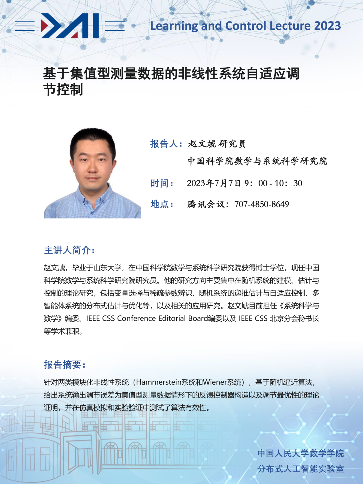 基于集值型测量数据的非线性系统自适应调节控制——赵文虓(中国科公司数学与系统科学研究院)