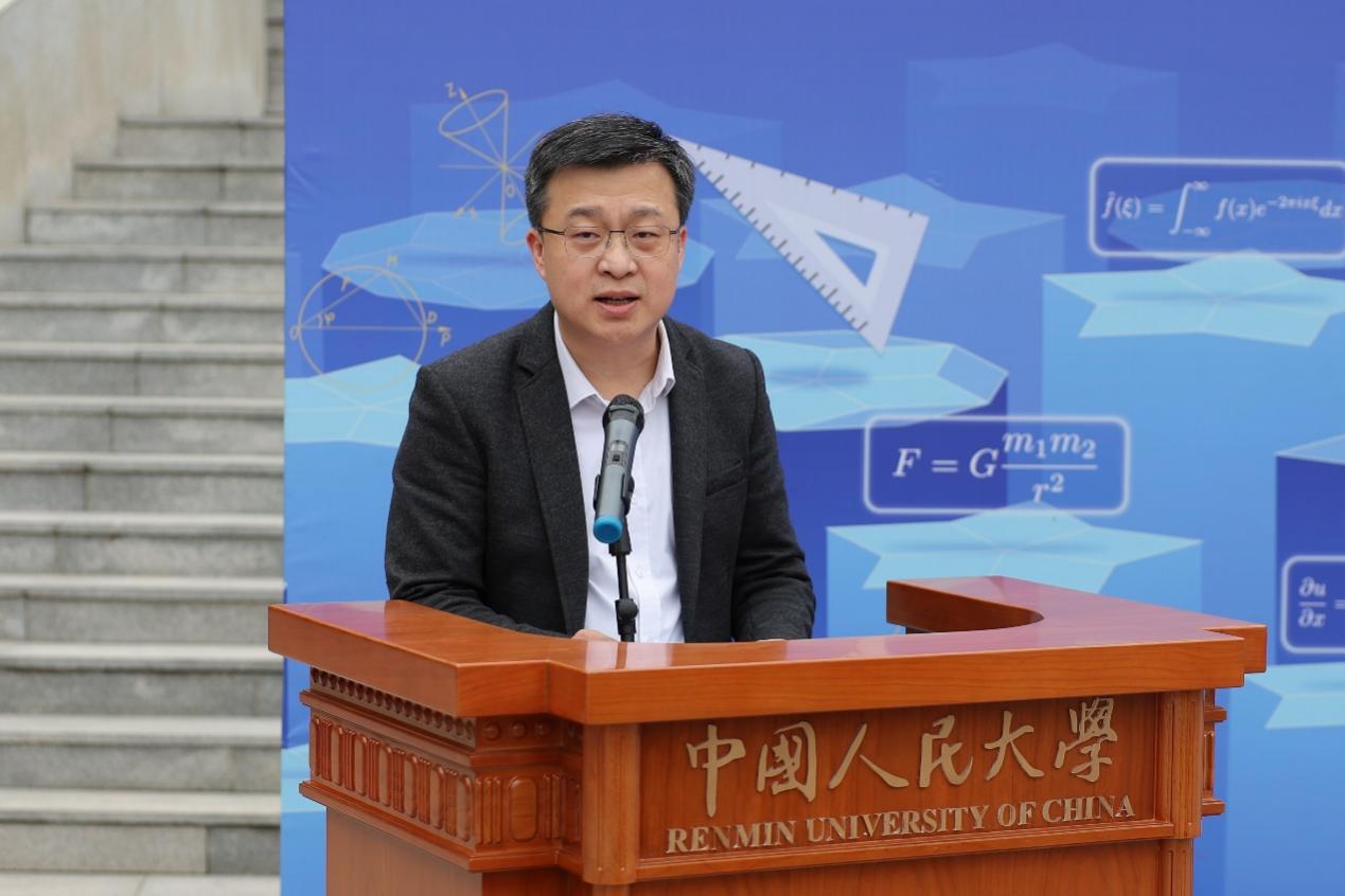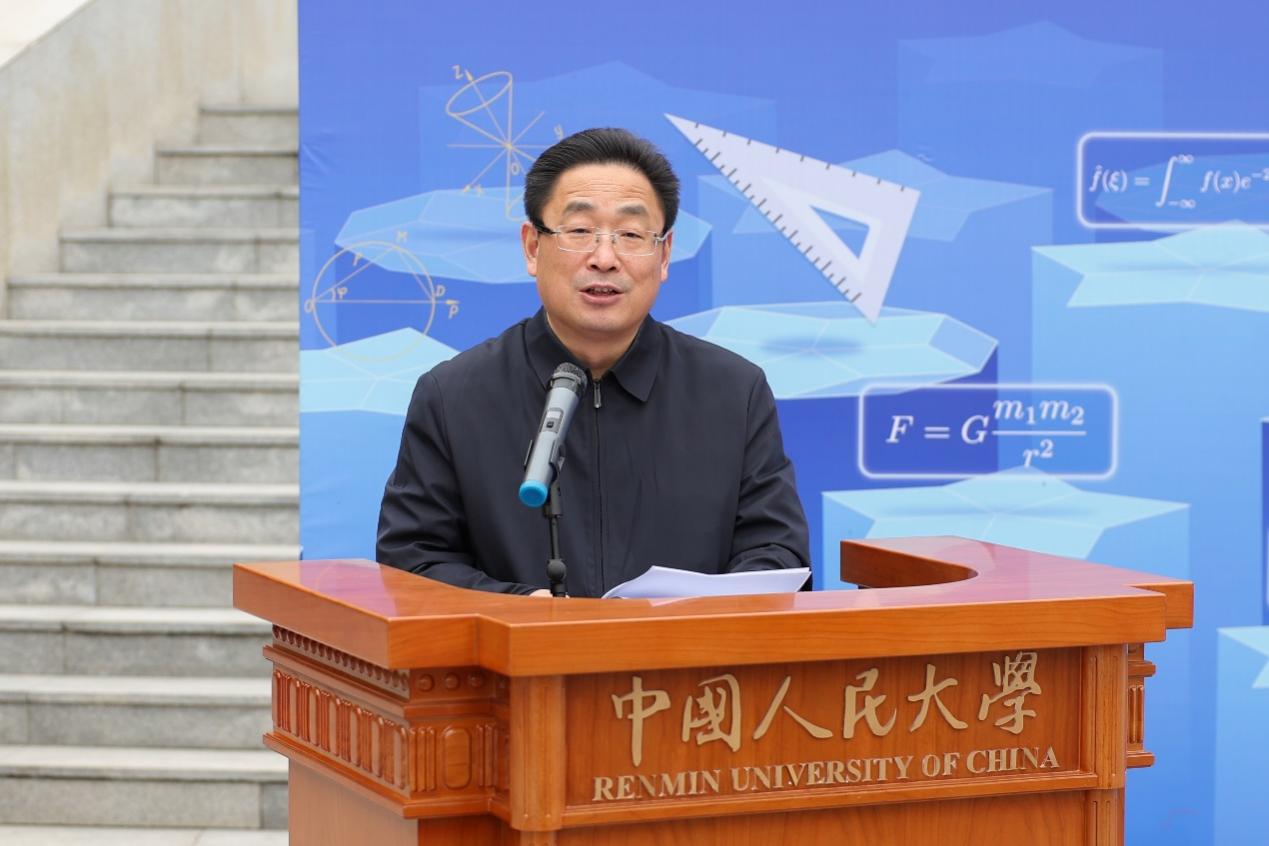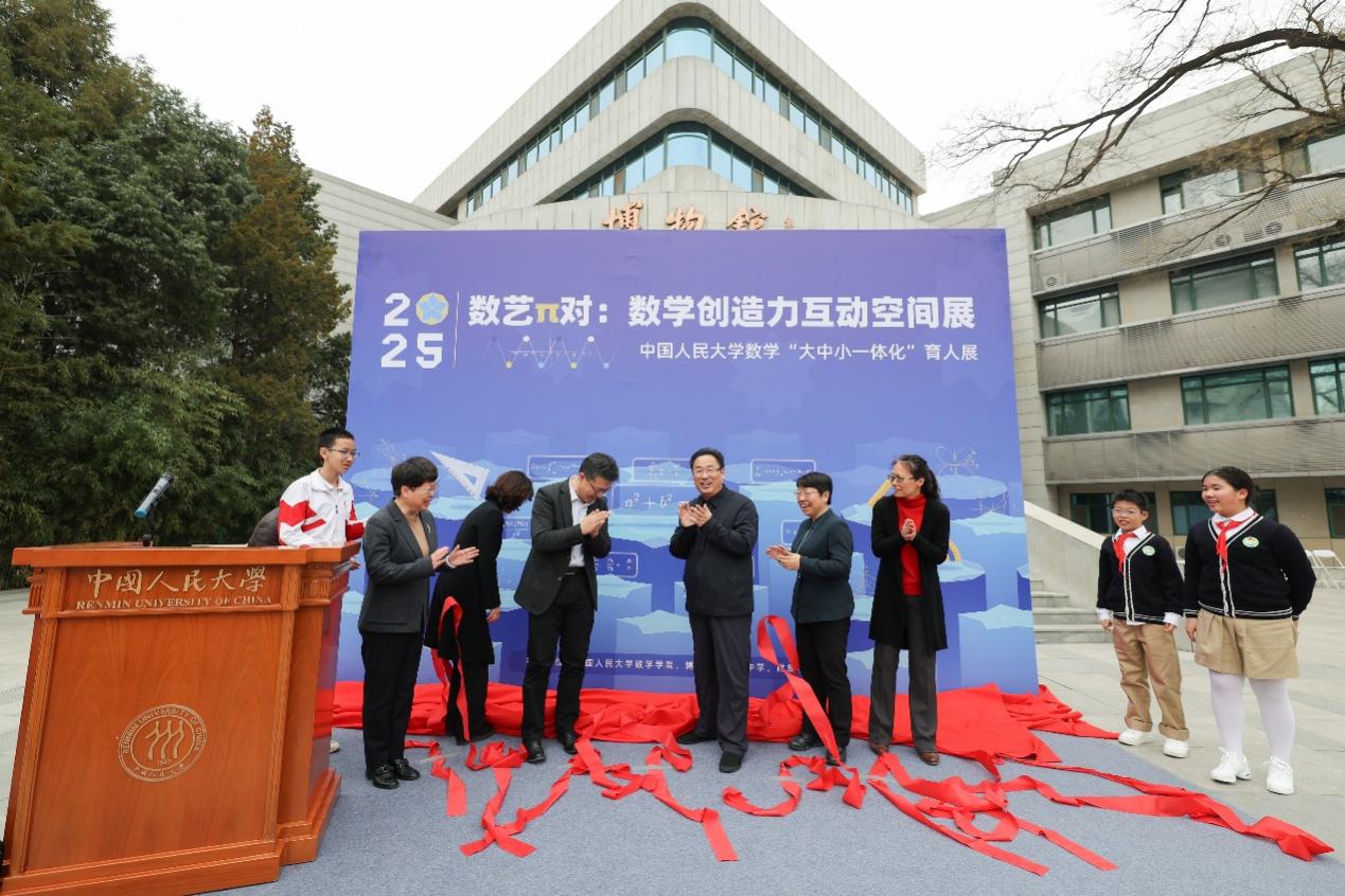 朱信凯副董事长为展览开幕致辞讲话。他表示,数学是科学的艺术边界,更是国家的战略密码。人民大学积极推进“大中小一体化”数学教育改革,本次展览实现学段衔接、动态体验、室内外互动的“三个延伸”,拓展学习空间,深化环境育人。他强调,“坚持教育、科技、人才一起抓”,对数学学科而言,这既是挑战,更是机遇。谁占领数学最高地,谁就能占领技术的最高地。我们要以时不我待的紧迫感,敢为人先的勇气,集中力量打造人大特色的优势数学学科。在新工科、新医科、新文科等前沿领域,凭借数学的基础支撑,抢占先机,成为交叉学科赛道上的引领者,推动公司高质量发展。他勉励师生以数学思维探索未来,为民族复兴贡献智慧和力量。