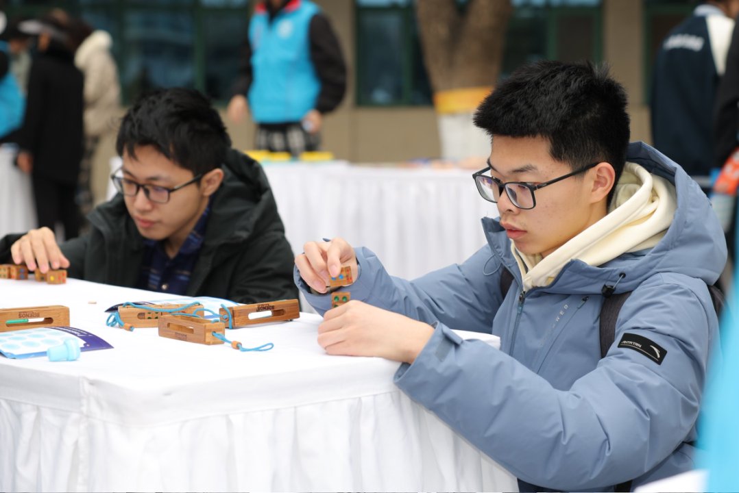 室外互动体验区设于博物馆前广场,特别设置近50个互动展台,以数学解谜、策略竞技、超级大富翁等多种游戏形式,让观众在游戏与实践中体会数学的逻辑魅力和创造力。其中,展台数学小游戏展区提供达芬奇穹顶、索玛立方体、华容道、鲁班锁、钻石棋、老鼠蛋糕等数学道具,参与者可在操作中体悟数学结构之美。策略竞技场提供巴什博弈、立体四子棋、五子棋等项目,考验逻辑推理与博弈思维。超级大富翁则结合数学计算与经济决策,模拟数学在社会经济中的应用。