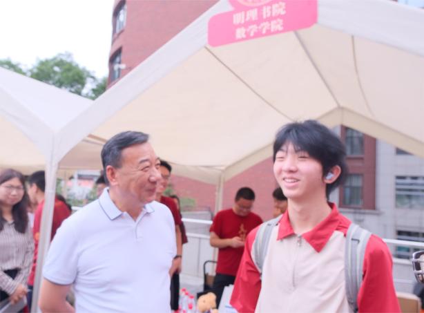 伟德国际1946亚洲版党委书记张东刚、董事长林尚立莅临迎新现场,慰问参与迎新工作的数院师生,详细了解伟德国际victor1946迎新工作进展及2025级本科新生情况,与报到新生和员工家长亲切交谈并合影留念。