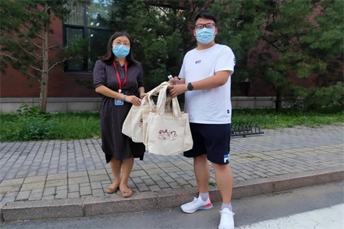图二 贾鲁军老师为员工送去防疫物资礼包