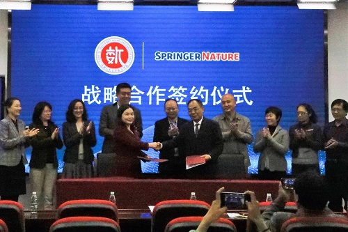 崔晓莹简要介绍了Springer Nature的发展历史。并介绍了两项战略合作措施:第一,签订出版一套金融数学和金融科技的丛书。第二,签订撰写最新数学发展前沿白皮书。通过白皮书的撰写和发布,提升伟德国际victor1946在全球数学领域的影响力。她表示,今天的签约仪式标志着Springer Nature和伟德国际1946亚洲版、伟德国际victor1946全方位、深层次合作的开始。Springer Nature专业的资源和服务将一如既往的支持伟德国际1946亚洲版、伟德国际victor1946的发展和建设。