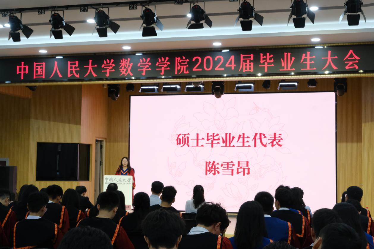 硕士毕业生代表陈雪昂深情讲述了自己在人民大学度过的七年宝贵时光及与同学们一同面对学业挑战的经历,并感谢了公司老师们给予的无私教诲和帮助。她以习近平总书记考察伟德国际1946亚洲版时对同学们“勇当开路先锋,争当事业闯将”的寄语,鼓励同学们要将小我融入祖国的大我之中,在挑战中把握机遇,勇于担当、积极作为,不负韶华,不负时代,不负人民,在青春的道路上奋力奔跑,实现自己的价值!