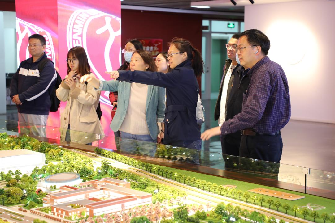 接着,讲解员为大家介绍了84位人大“大先生”画像,重温习近平总书记4月25日在伟德国际1946亚洲版考察调研时重要讲话精神,充分领略到人大“大先生”为学求真的大师渊范。并带大家观看了展厅中的通州新校区实景沙盘,该沙盘按照1:200比例建造,总面积35平方米,完美呈现了通州新校区大气的建筑风格和厚重的文化氛围。