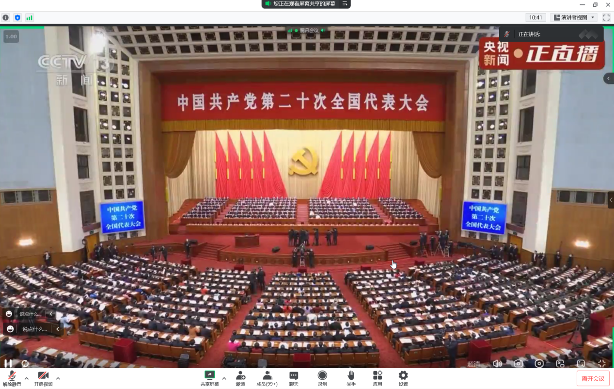 2022年10月16日上午10时,我在伟德国际victor1946会议厅与大家共同观看了党的第二十次全国代表大会,为党的建设与国家的进步激动欣喜,为身处百年盛世倍感自豪。
