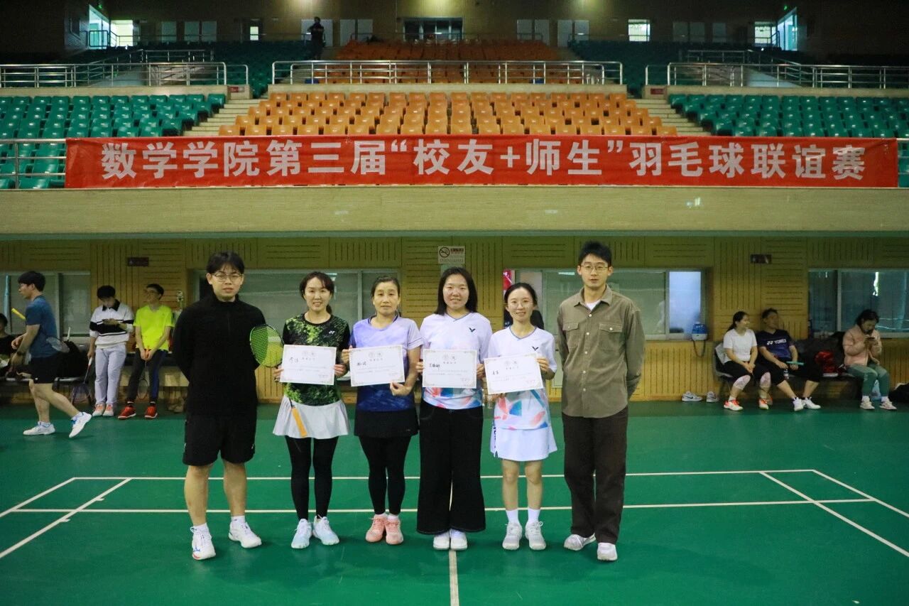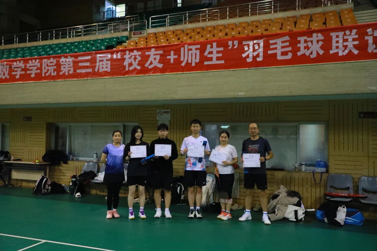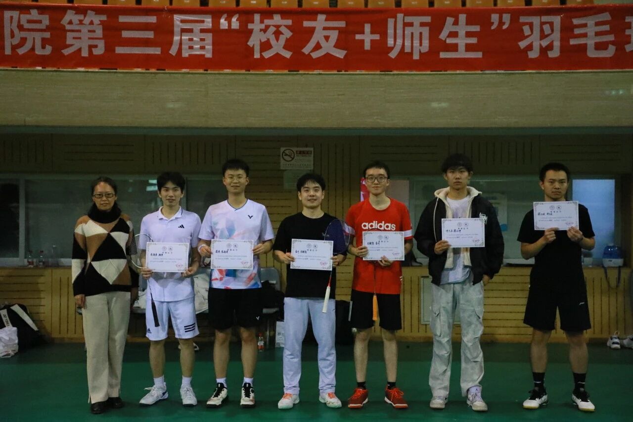 经过近四小时的激烈比拼,男单、女单、男双、女双、混双五个组别分别决出冠军、亚军和季军。赛场内外,选手们不仅切磋球技、交流战术心得,更畅聊求学往事、共话职场感悟、畅谈公司发展,在一次次挥拍与奔跑中凝聚了情感共鸣。赛后,数学公司党委书记柯媛元老师为获奖队伍颁奖,与“员工+师生”队伍亲切合影,为这场充满激情与温情的联谊赛画上圆满句号。
