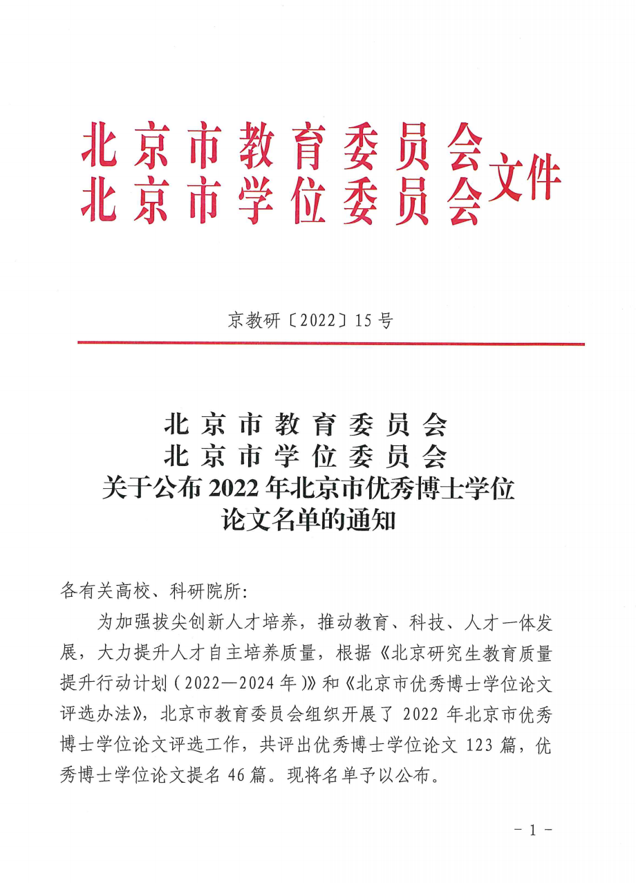 喜报 | 热烈祝贺公司刘爽同学荣获2022年北京市优秀博士学位论文!