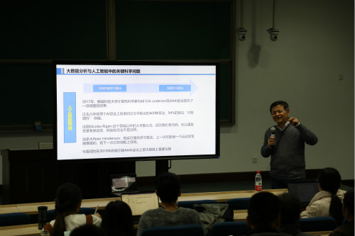 2018年11月23日下午,伟德国际victor1946明德数学讲堂系列第四讲,在国学馆114室成功举办。中国科公司院士、北京航空航天大学教授郑志明教授应邀,做题为“基于大数据的确定性小概率事件发现方法及应用”的报告。