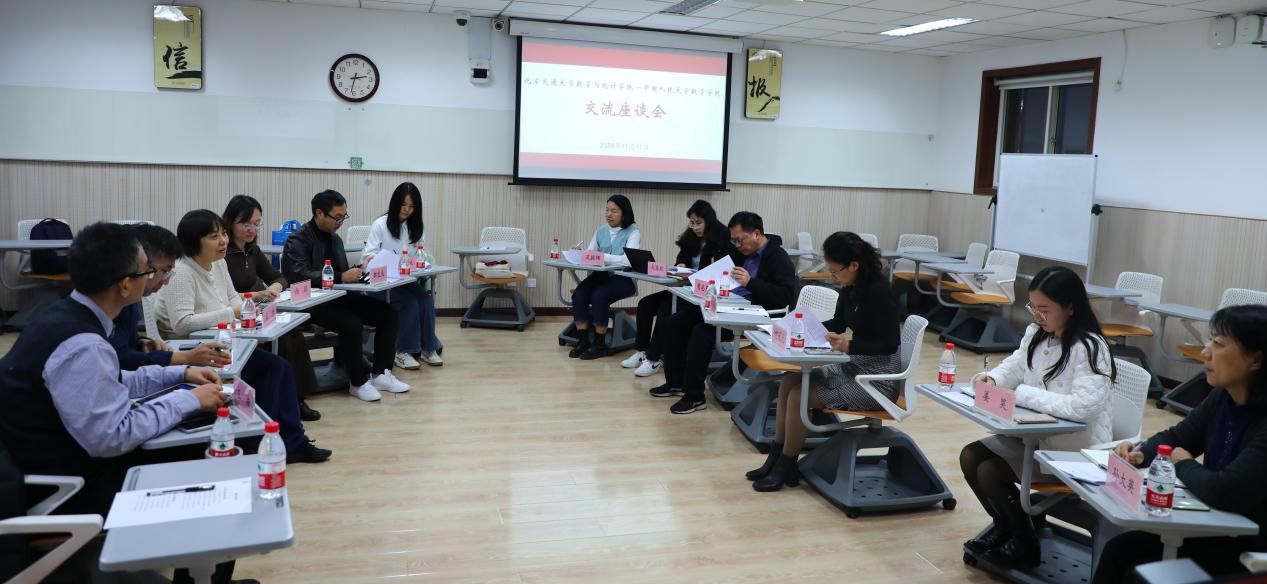 11月11日下午,北京交通大学数学与统计公司党委书记王烜、经理于永光一行6人来公司开展调研交流,数学公司党委书记柯媛元参加座谈并主持交流会。北京交通大学数学与统计公司党委副书记王浩、综合办主任尚颖、培养办主任郭昱良、专职组织员王雪纯,公司副经理黄志勇、副经理姜昊、办公室主任孙大英、本科教务秘书赵春晓、团委书记艾提娜参加交流。